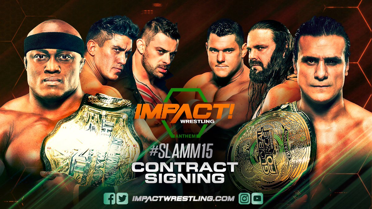 – Bruce Prichard and Jeremy Borash starts off the show with the official contract signings for the Rosemary/Sienna Championship Unification Match, The Mixed Tag Team Full Metal Mayhem Match, EC3/James Storm Strap Match and finally the Bobby Lashley/Alberto El Patron main event.