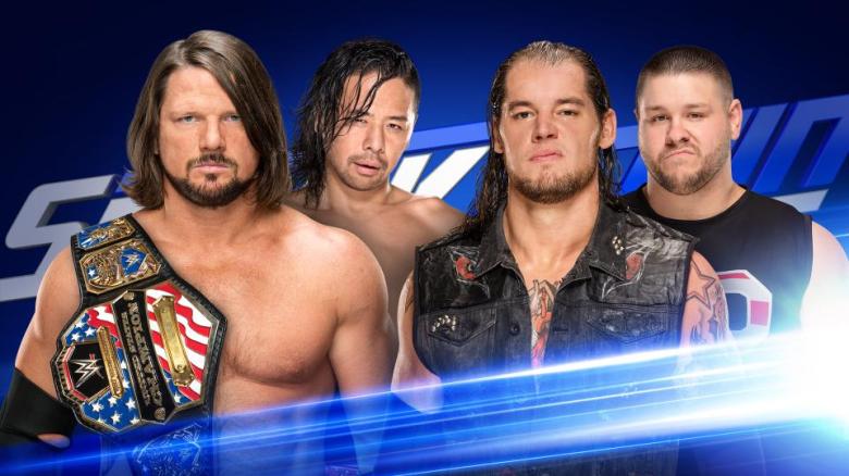 Corbin gets Nakamura trapped in a Bear Hug. Nakamura fights out of the Bear Hug. Nakamura ducks a clothesline from Corbin. Nakamura drops Corbin with a running knee. Corbin knocks Styles off the ring apron. Nakamura lands a series of buzzsaw kicks. Corbin plants Nakamura with the Deep Six. Corbin transitions into the ground and pound attack. Owens and Styles are tagged in. Styles clotheslines Owens. Styles with a falling forearm smash for a two count. Owens sends Styles face first to the top turnbuckle. Styles plants Owens with a Gut Buster. Owens responds with a big lariat. Owens tags in Corbin.