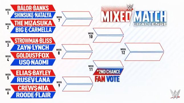 First Match: Mandy Rose & Goldust (Hired Heroes USA) vs. Jimmy Uso & Naomi (Boys and Girls Club) in a First Round Match In The Inaugural WWE Mixed Match Challenge Tournament. Daniel Bryan Is The Special Guest Referee