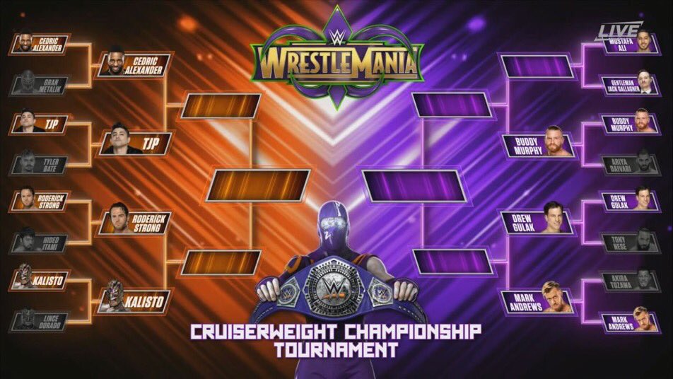 First Match: Buddy Murphy vs. Ariya Daivari in a First Round Match In The Vacated WWE Cruiserweight Championship Tournament