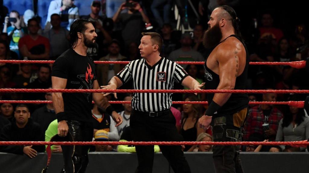 If Strowman has a problem with his opponent, he’ll walk right up to him, he suggests that Rollins does the same. Not only did Rollins cost them the tag team titles, but hoped that Strowman doesn’t get a rematch. Rollins tells Strowman that he has a lot on his plate. He has Bray Wyatt on the horizon at Hell in a Cell. Then on the season premier of Raw, he has to face the winner of tonight’s Fatal Five Way Elimination Match. However, Rollins wants to fight Strowman tonight. Is that a challenge? Take that however you want to. Good, tonight you’re going to get these hands.