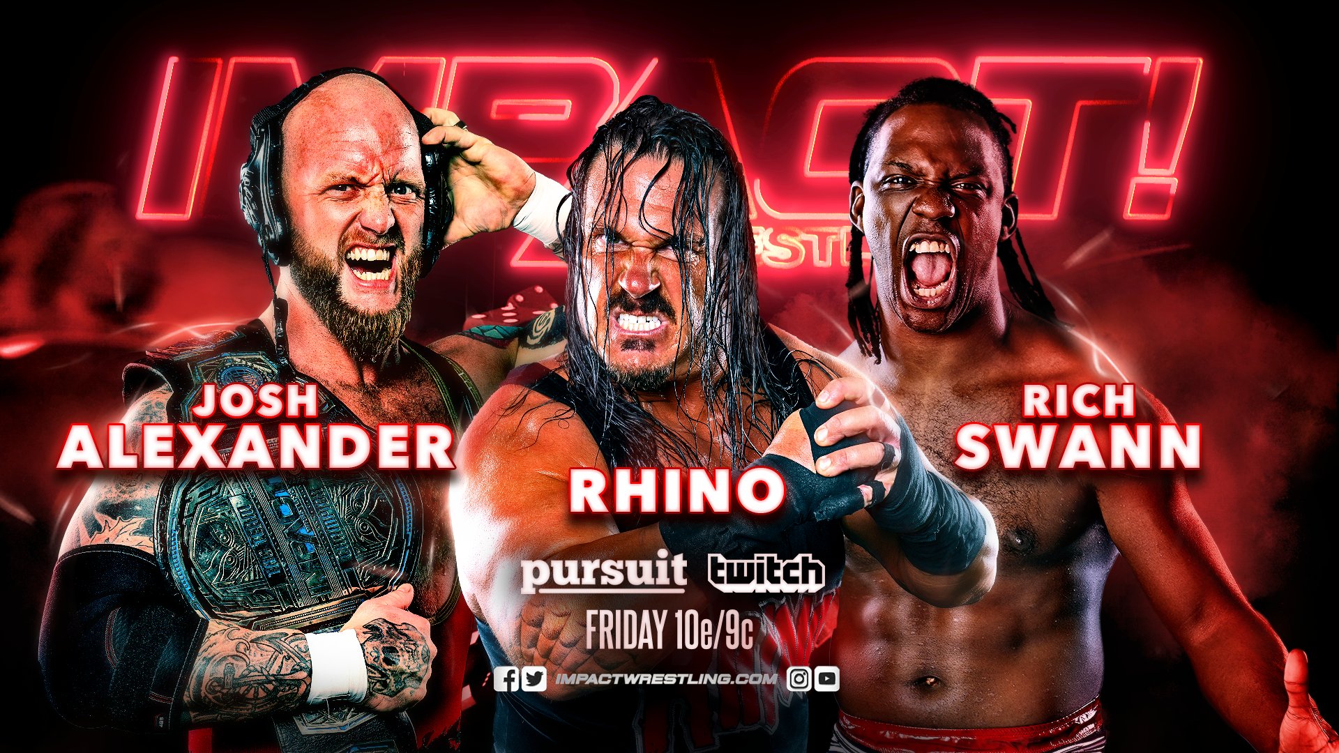 Third Match: Josh Alexander w/Ethan Page vs. Rhino w/Rob Van Dam vs. Rich Swann w/Willie Mack in a Triple Threat Match