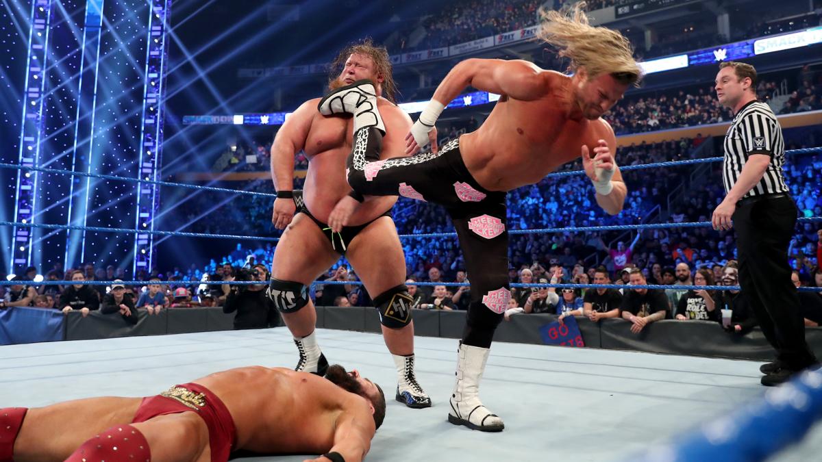 Tucker Knight and The Miz will start things off. Miz kicks Knight in the gut. Miz with rapid fire haymakers. Morrison tags himself in. SpineBuster/SpringBoard Enzuigiri Combination for a two count. Morrison transitions into a ground and pound attack. Morrison stomps on the midsection of Knight. Miz tags himself in. Morrison with a running knee strike. Miz follows that with The Running Boot for a two count. Miz mocks Dozovic. Miz and Morrison are cutting the ring in half. Miz catapults Knight into a forearm smash from Morrison. Morrison with a SlingShot Elbow Drop for a two count. Morrison is picking Knight apart. Knight is displaying his fighting spirit. Knight clotheslines Morrison. Morrison tags in Miz. Dozovic punches Miz. Knight dropkicks Miz to the floor.