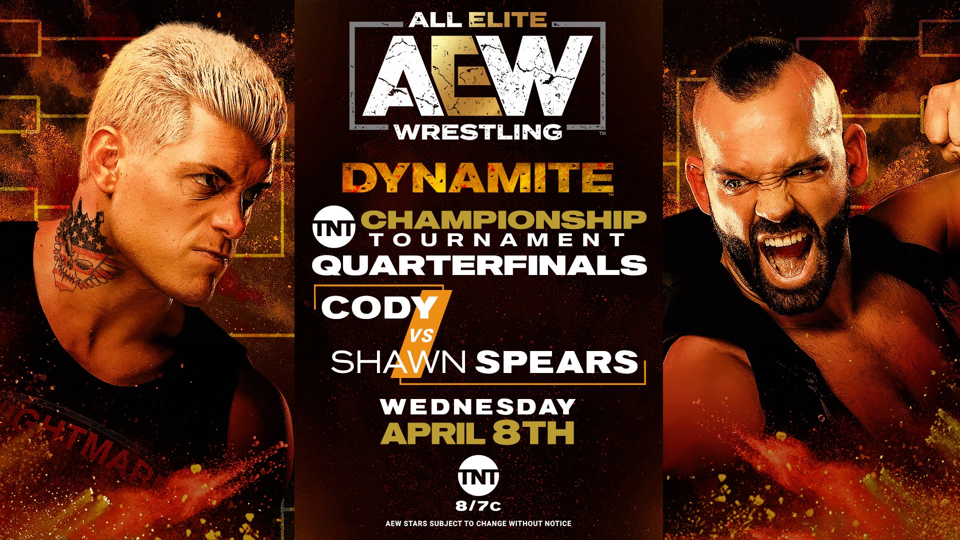 Fifth Match: (12-6-1) Cody Rhodes w/Brandi Rhodes vs. (7-11) Shawn Spears In A Quarter-Final Round Match In The Inaugural TNT Championship Tournament