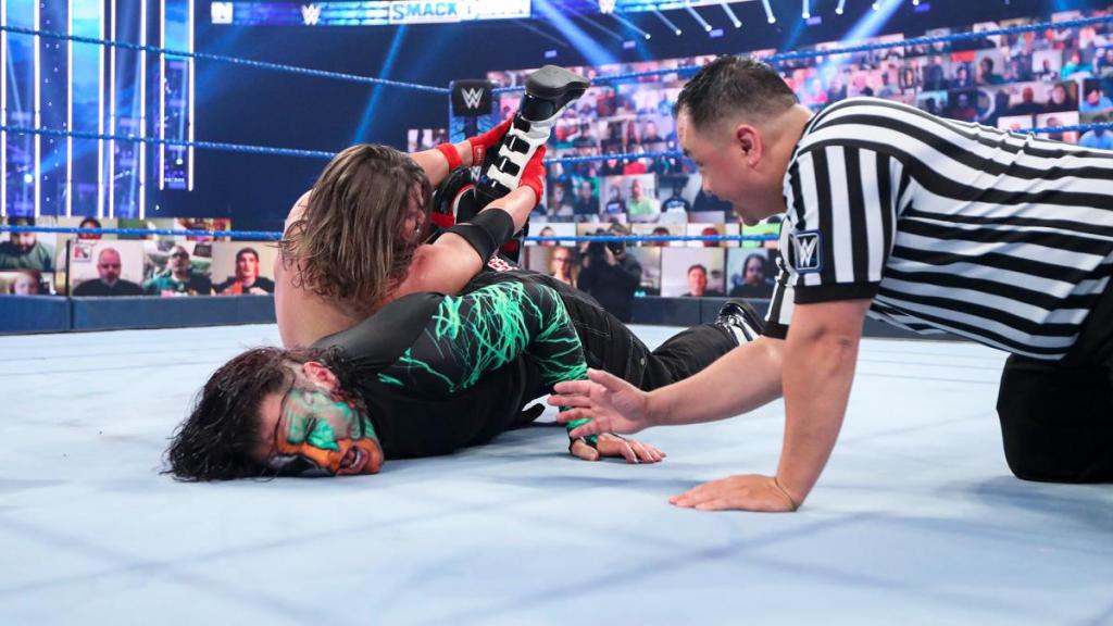 Dorado and Nakamura are tagged in. Dorado kicks Nakamura in the face. Dorado with a Flying Crossbody Block. Dorado repeatedly stomps on Nakamura’s back. Dorado with a Wrecking Ball Dropkick to Cesaro. Dorado side steps Nakamura into the turnbuckles. Dorado unloads a series of strikes. Dorado with a Step Up Enzuigiri. Nakamura reverses out of the irish whip from Dorado. Dorado showcases his athleticism. Dorado SuperKicks Nakamura. Dorado lands The Three MoonSaults for a two count. Cesaro goes for a GutWrench Suplex, but Dorado counters with a Hurricanrana. Metalik wipes outs Cesaro with a Tilt-A-Whirl HeadScissors TakeOver on the floor. Nakamura hits The Reverse Exploder Suplex. Nakamura is putting the boots to Metalik. Nakamura goes for The Kinshasa, but Dorado rolls him over for a two count. Dorado connects with The Golden Rewind. Cesaro made the blind tag. Cesaro with a sunset flip for a two count. Dorado denies The Cesaro Swing. Dorado ducks a clothesline from Cesaro. Dorado goes for a Hurricanrana, but Cesaro rolls him over to pickup the victory. After the match, Dorado gets into a shoving contest with Kalisto.