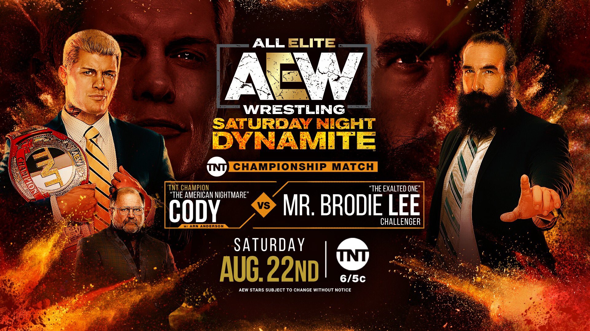 Sixth Match: (26-6-1) Cody Rhodes (c) w/Arn Anderson vs. (8-1) Brodie Lee w/Dark Order For The AEW TNT Championship