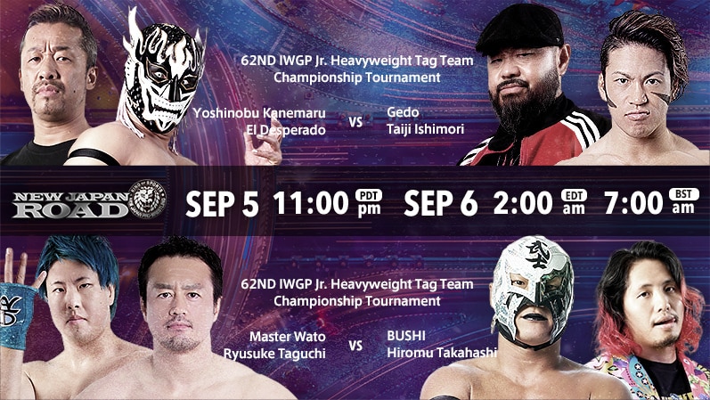 Fifth Match: (0) Taiji Ishimori & Gedo vs. (0) El Desperado & Yoshinobu Kanemaru In A IWGP Junior Heavyweight Tag Team Title Tournament Match