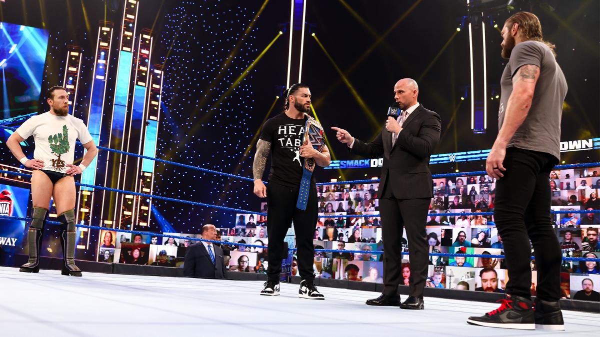 Roman Reigns, Edge, Daniel Bryan, and Adam Pearce Segment