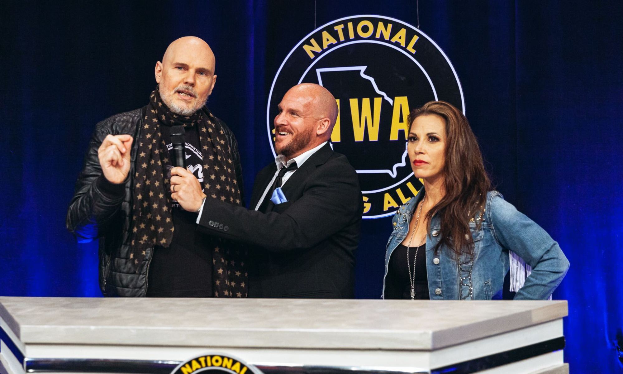 – The mysterious masked wrestler that recently appeared on NWA Powerrr told Kyle Davis and May Valentine that Billy Corgan is the only person who knows his true identity.