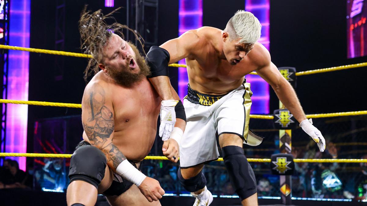 Waller kicks Gacy in the gut. Waller punches Gacy in the back. Gacy with a knife edge chop. Gacy applies a side headlock. Waller tugs on Gacy’s hair. Waller with Muay Thai Knee Strikes. Waller continues to punch Gacy in the back. Overhand Chop Exchange. Waller with a knee lift. Waller slams Gacy’s head on the top turnbuckle pad. Waller with clubbing muay thai knee strikes. Waller talks smack to Gacy. Gacy and Waller are trading back and forth shots. Waller avoids The Pump Kick. Waller with The Big Boot. Waller backs Gacy into the turnbuckles. Waller repeatedly stomps on the midsection of Gacy. Waller applies a front face lock. Gacy drives Waller back first into the turnbuckles. Gacy punches Waller. Waller dropkicks the left knee of Gacy. Waller is choking Gacy with his boot.