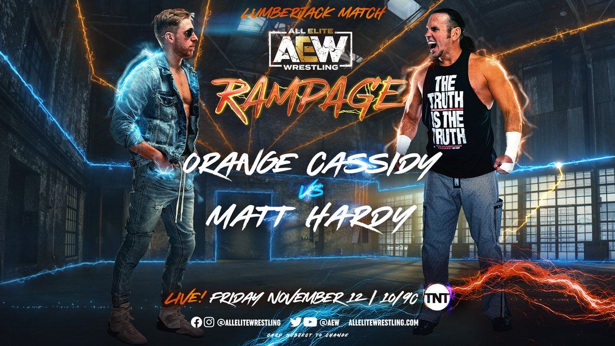 Fourth Match: (48-13-2) Orange Cassidy w/The Best Friends vs. (26-13) Matt Hardy w/The Hardy Family Office In A Lumberjack Match