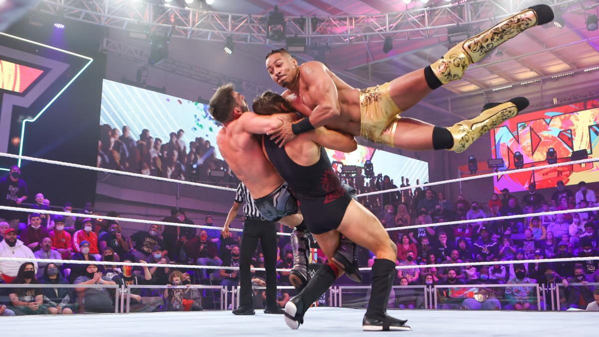 Kayden Carter and Persia Pirotta will start things off. Carter ducks a clothesline from Pirotta. Carter applies a side headlock. Pirotta whips Carter across the ring. Carter ducks under two clotheslines from Pirotta. Pirotta drops Carter with a shoulder tackle. Hartwell and Catanzaro are tagged in. Hartwell is completely despondent. Catanzaro applies a waist lock. Hartwell slings Catanzaro across the ring. Hartwell goes for a PowerBomb, but Catanzaro counters with a Hurricanrana. Catanzaro tags in Carter. Hartwell is trying to create separation. Catanzaro sweeps out the legs of Hartwell. Carter with a SpringBoard Dropkick. Hartwell hammers down on the back of Carter’s neck. Hartwell whips Carter across the ring. Carter holds onto the ropes. Carter kicks Hartwell in the face. Catanzaro with a shoulder tackle.