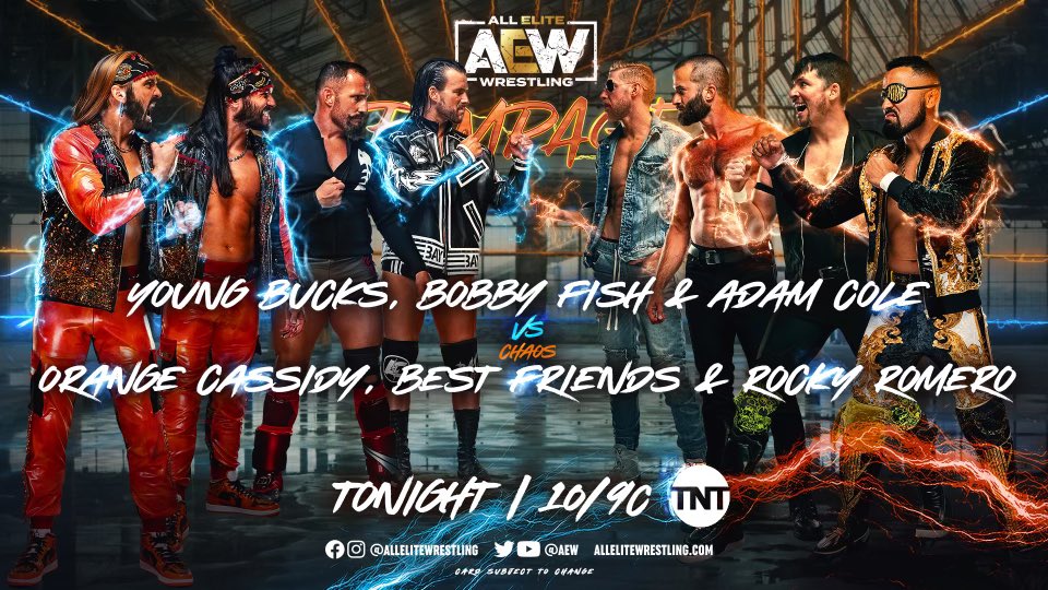 First Match: (9-3) Adam Cole, (5-5) Bobby Fish, (48-21) The Young Bucks w/Brandon Cutler vs. (53-16-2) Orange Cassidy, (1-2) Rocky Romero, (26-11) Best Friends w/Wheeler Yuta In A 8-Man Tag Team Match