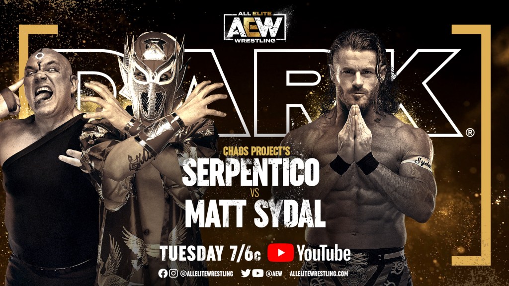 Chop Exchange. Sydal repeatedly kicks the left hamstring of Serpentico. Sydal with a single leg takedown. Sydal drops his weight on the left leg of Serpentico. Sydal ties Serpentico up in a knot. Serpentico grabs the bottom rope which forces the break. Serpentico decks Sydal with a back elbow smash. Sydal with two side headlock takeovers. Sydal with a flying mare takedown for a two count. Sydal gets distracted by Luther. Serpentico with a forearm smash. Serpentico whips Sydal across the ring. Sydal rolls Serpentico over for a two count. Serpentico drops Sydal with The Flatliner. Serpentico slams Sydal’s head on the top turnbuckle pad. Serpentico is throwing haymakers at Sydal. Sydal reverses out of the irish whip from Serpentico. Serpentico kicks Sydal in the chest. Serpentico with a Headscissors Takeover. Serpentico clotheslines Sydal for a one count. Serpentico dumps Sydal out of the ring.