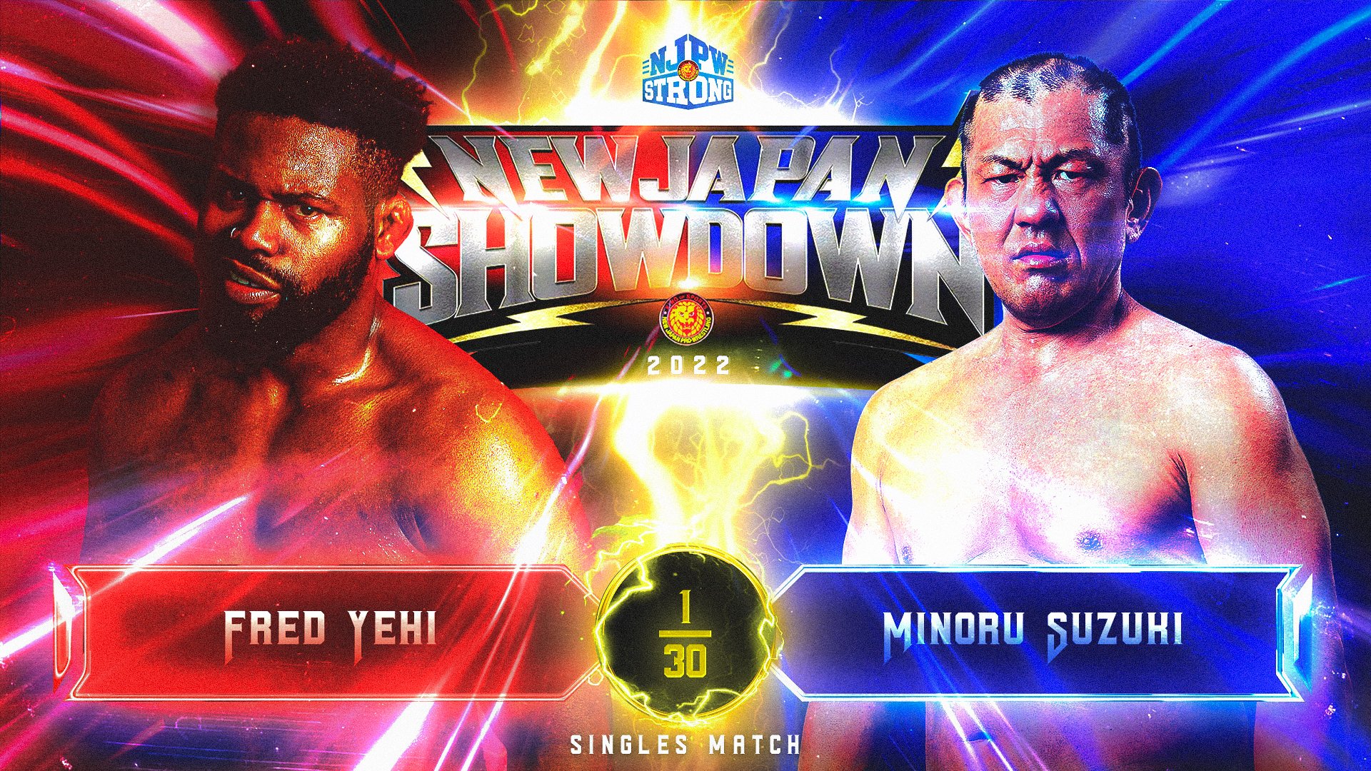 Suzuki with forearm shivers. Yehi with an arm-ringer. Yehi with a chop/forearm combination. Yehi viciously stomps on Suzuki’s chest. Yehi drops Suzuki with a NeckBreaker for a two count. Yehi applies The Koji Clutch. Suzuki puts his foot on the bottom rope which forces the break. Yehi continues to stomp on Suzuki’s chest. Yehi with a blistering chop. Suzuki reverses out of the irish whip from Yehi. Suzuki with The Helluva Kick. Following a snap mare takeover, Suzuki with The PK for a two count. Yehi with a chop/forearm combination. Suzuki applies The Fujiwara Arm-Bar. Suzuki kicks Yehi in the back. Suzuki tells Yehi to bring it. Forearm Exchange. Yehi with a drop toe hold. Yehi with rabid punches. Yehi reapplies The Koji Clutch. Suzuki refuses to quit. Yehi repeatedly kicks Suzuki in the face. Yehi with a forearm smash. Suzuki ducks a clothesline from Yehi. Suzuki applies The Sleeper Hold. Suzuki rocks Yehi with a forearm smash. Suzuki connects with The Gotch Style PileDriver to pickup the victory.