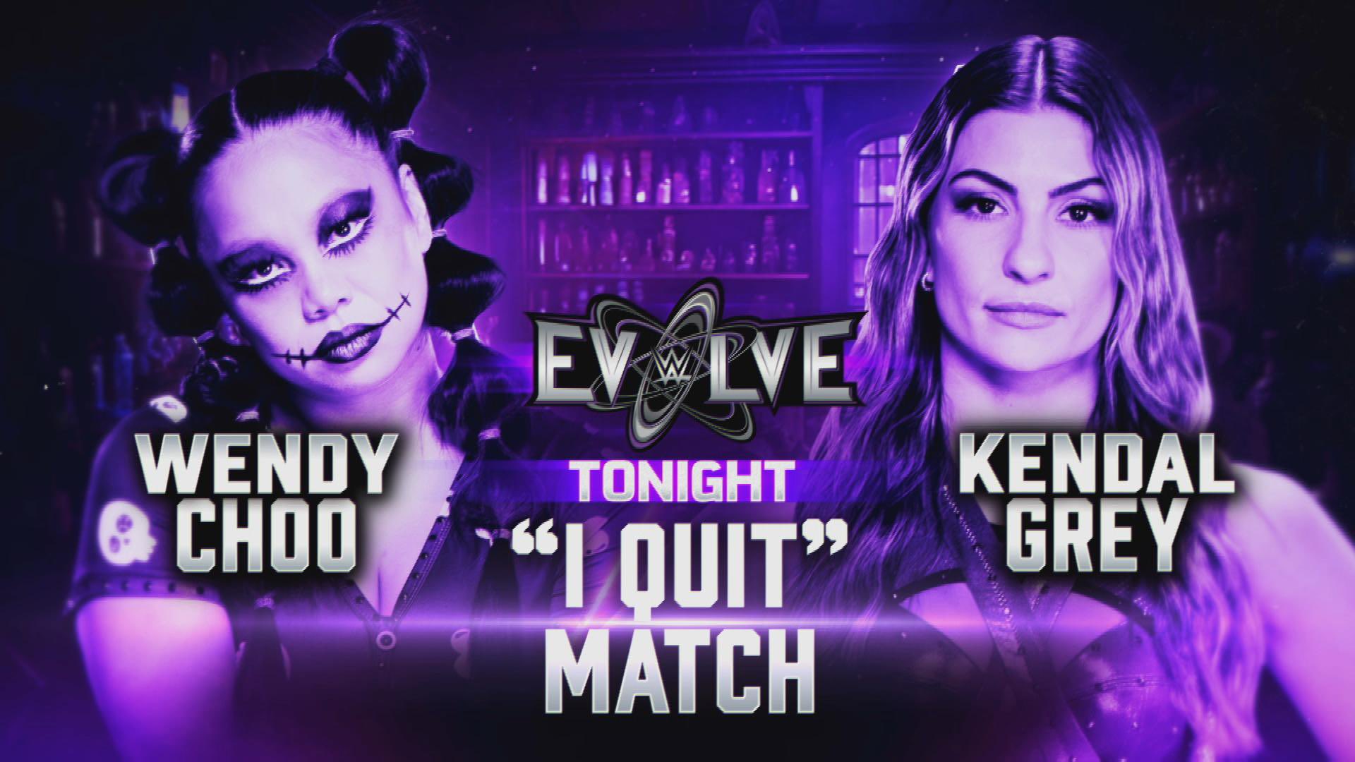 – Chuey Martinez had a backstage interview with Kali Armstrong. What are her thoughts regarding tonight’s main event, as either Kendal Grey or Wendy Choo may be her next challenger? She’s been the EVOLVE Women’s Champion for about 100 days, but tonight she gets to sit back and be a fan, and watch Kendal and Wendy beat the hell out of each other until of them say, I Quit. But the real question is, how’s Kendal gonna make Wendy say, I Quit, when the girl don’t talk? They’re gonna prove why they’re at the top of the women’s division, but they’re also gonna prove why Kali is above both of them. Kali doesn’t bend, she doesn’t fold, and she sure as hell doesn’t quit. Wendy Choo awkwardly stares at Kali before she heads to the ring.