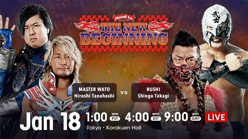 New Japan Pro WrestlingNJPW Road To The New Beginning Results (1/18/21): Hiroshi Tanahashi & Master Wato vs. Shingo Takagi & Bushi